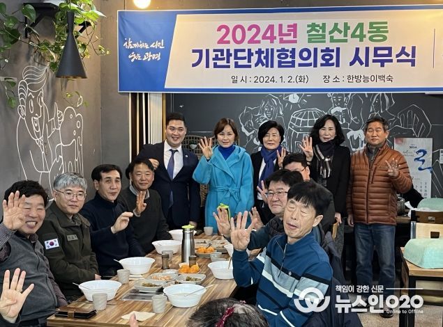 (뉴스인020 = 이한영 기자) 광명시 철산4동 행정복지센터는 2일 관내 음식점에서 철산4동 단체장협의회 및 동 주관으로 ‘신년맞이 떡국 오찬’ 행사를 진행했다.