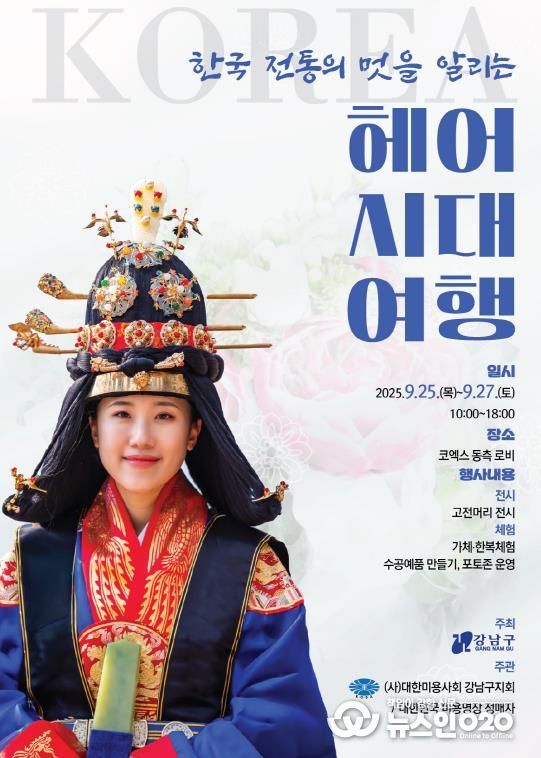 (뉴스인020 = 김성길 기자) 꿈이 모이는 도시, 미래를 그리는 강남구가 오는 9월 25일부터 27일까지 코엑스 동측 로비에서 ‘한국 전통의 멋을 알리는 헤어시대 여행’을 개최한다.