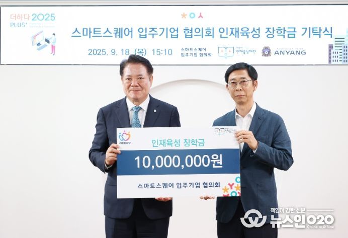 (뉴스인020 = 김성길 기자) 안양시 인재육성재단은 18일 스마트 스퀘어 입주기업 협의회로부터 1천만 원의 인재육성 장학금을 기탁받았다고 19일 밝혔다.