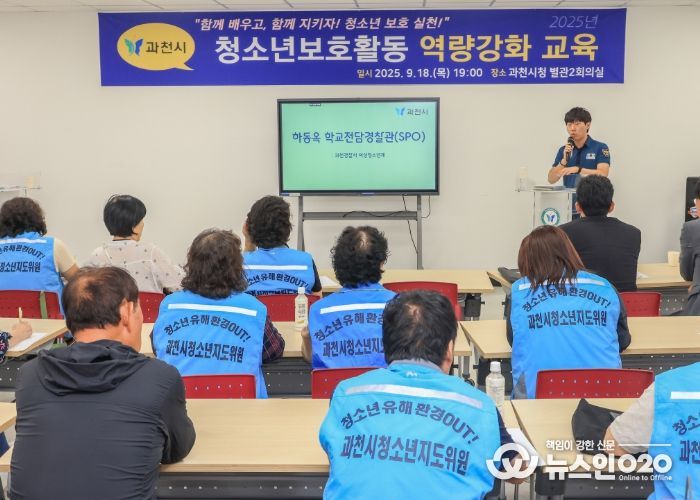 (뉴스인020 = 김성길 기자) 과천시는 지난 18일 시청 별관2 회의실에서 청소년지도위원, 유해환경감시단, 문원초 아버지회 등 청소년 선도·보호 활동 단체 40여 명을 대상으로 ‘함께 배우고, 함께 지키자! 청소년 보호실천!’이라는 주제로 역량 강화 교육을 했다.
