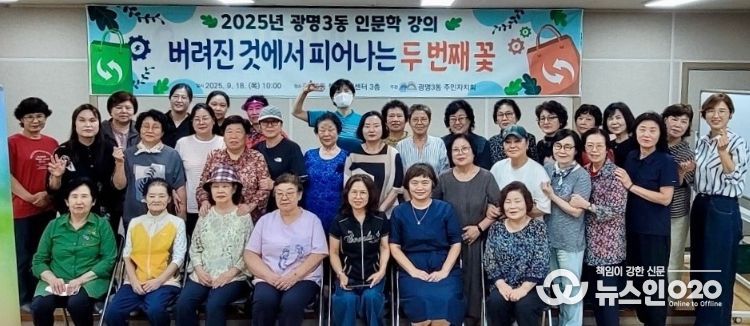 (뉴스인020 = 김성길 기자) 광명시 광명3동 주민자치회는 지난 18일 인문학 강의 ‘버려진 것에서 피어나는 두 번째 꽃’을 개최했다.