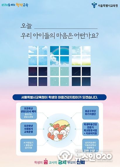 (뉴스인020 = 김성길 기자) 서울특별시교육청은 모든 학생의 정서적 안정을 실현하겠다는 교육청의 정책 방향과 실행 약속을 알리기 위해 ‘학생 마음건강(생명존중) 증진 캠페인’을 본격 추진한다.