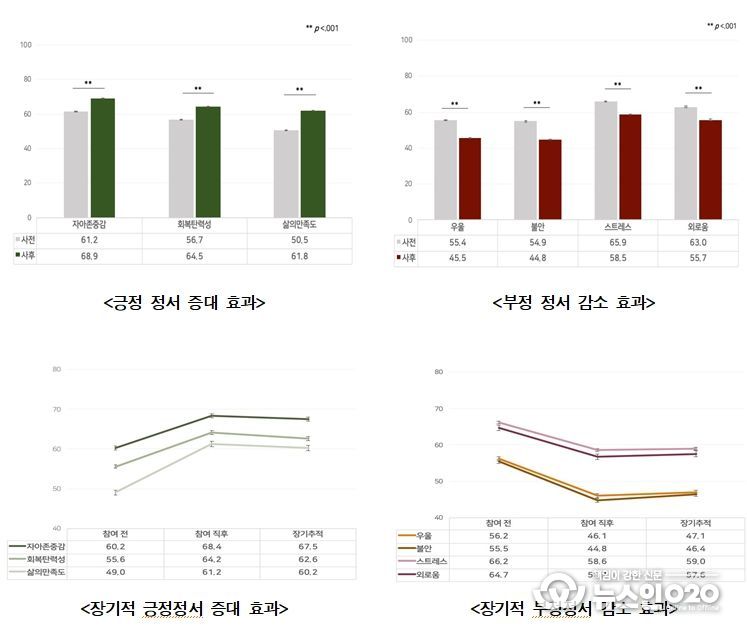 응답자 중 889명에 대해선 3개월 이상 추적조사를 진행했는데 긍정 정서 향상과 부정 정서 감소 효과가 유지되고 있음이 확인됐다.