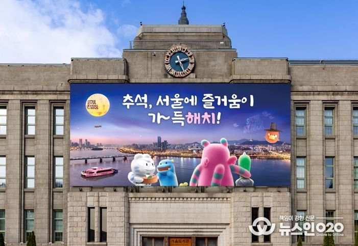 (뉴스인020 = 김성길 기자) 서울시는 9월 22일, 다가오는 추석에 맞춰 서울꿈새김판을 새 단장 후 공개했다. 이번 추석편 꿈새김판의 문구는 ‘추석, 서울에 즐거움이 가득해치!’ 이다.