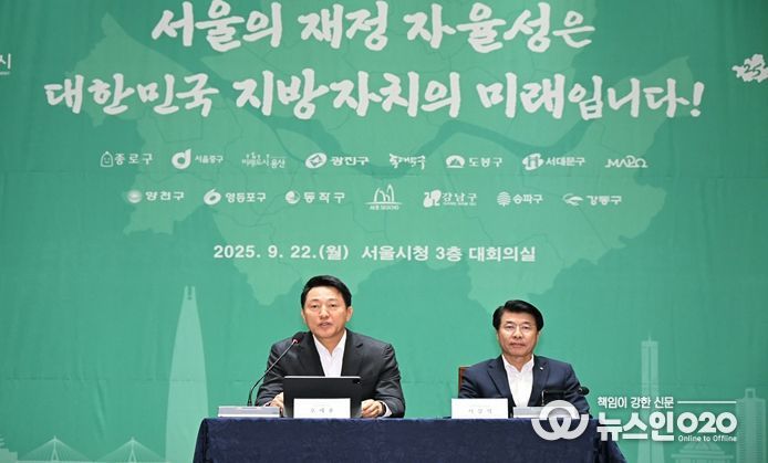 (뉴스인020 = 김성길 기자) 서울시와 구청장협의회는 22일 오전 8시 30분 서울시청 대회의실에서 소비쿠폰 등 정책 비용에 대한 정부의 일방적인 지자체 전가와 서울시에 대한 차등적 국비 보조 관행 개선을 촉구하는 내용의 ‘서울시‧자치구 지방재정 공동선언’을 발표했다.