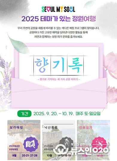 이수연 서울시 정원도시국장은 “이번 ‘테마가 있는 정원여행’은 공원의 역사와 문화를 체험 콘텐츠로 엮어 시민이 일상 속에서 정원의 가치를 다시 발견하도록 돕는 프로그램”이라며 “향을 매개로 한 오감 체험을 통해 각 공원의 특색을 느끼고, 정원 여가 문화가 시민 생활 속으로 확산되길 기대한다”고 밝혔다.