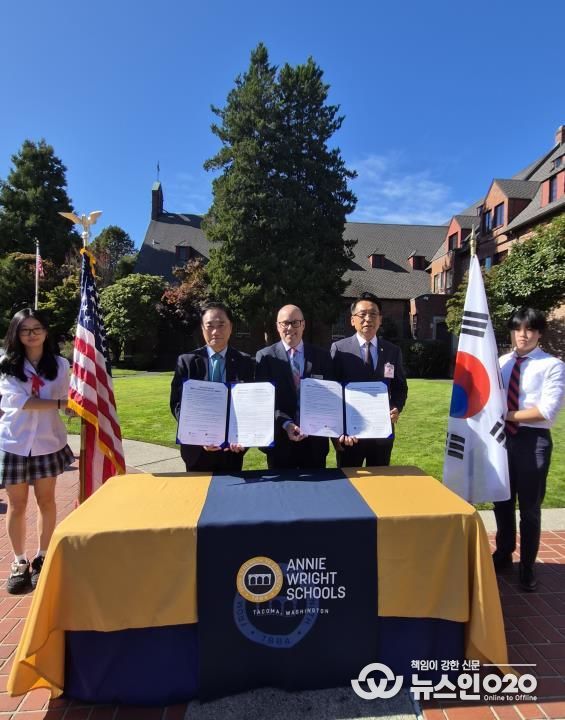 (뉴스인020 = 김성길 기자) 평택시는 9월 22일(미국 현지시간) 워싱턴주 타코마시에 위치한 명문 사립학교 애니 라이트 스쿨(Annie Wright Schools)과 ‘평택국제학교 설립 추진을 위한 양해각서(MOU)’를 체결했다고 밝혔다.