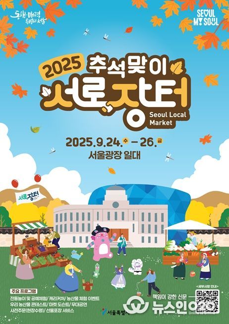 (뉴스인020 = 김성길 기자) 서울시는 한가위를 맞아 전국 최대 규모의 직거래장터인 '추석맞이 서로장터'를 오는 9월 24일부터 26일까지 3일간 서울광장에서 개최한다. 우수 농수특산물을 한자리에서 만날 수 있는 동시에 최대 30% 할인 판매하여 시민들의 추석 장바구니 부담을 덜고, 다양한 문화공연과 체험 및 경품 이벤트도 준비되어 있다.