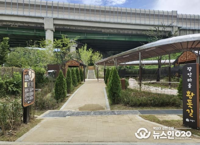 이번에 개장되는 ‘장안마을 황톳길’은 총연장 110m 순환형 산책로로 조성됐으며, 폭 2.5m의 시원한 개방감을 준 것이 특징이다.