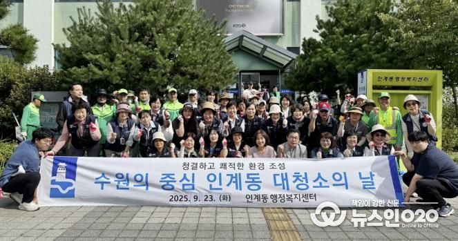 (뉴스인020 = 기자) 수원시 팔달구 인계동은 지난 23일 오전, 인계동 수원시청 부근 인계박스 및 장다리로 일대 등 화단과 대로변을 중심으로 인계동 단체, 환경 관리원 및 주민 등 70여 명과 함께 추석맞이 일제 대청소를 실시했다.