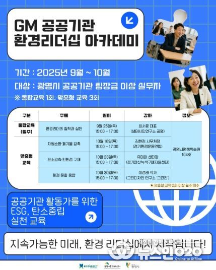광명시환경교육센터는 오는 25일부터 10월 30일까지 ‘2025 GM(지엠) 공공기관 환경리더십 아카데미’를 운영한다.