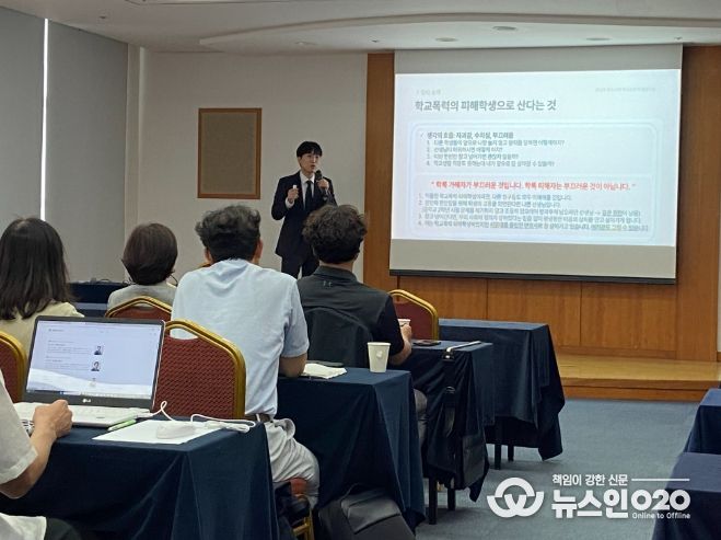 연수는 ▲학교폭력(한상훈 변호사) ▲성희롱·성폭력 예방(권송자 전문강사) ▲학생맞춤통합지원(윤경희 선도학교 교감)의 세 가지 핵심 주제로 진행됐다. 각 분야 전문가들은 최신 판례와 실제 사례, 선도학교 운영 노하우 등을 공유하며 관리자의 실질적인 대응 역량을 강화하는 데 집중했다.