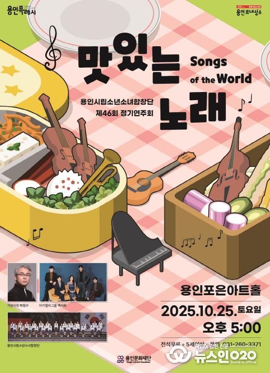 (뉴스인020 = 김성길 기자) 용인문화재단은 오는 10월 25일 용인포은아트홀에서 용인시립소년소녀합창단 제46회 정기연주회 ‘맛있는 노래 : Songs of the World’를 개최한다고 밝혔다.