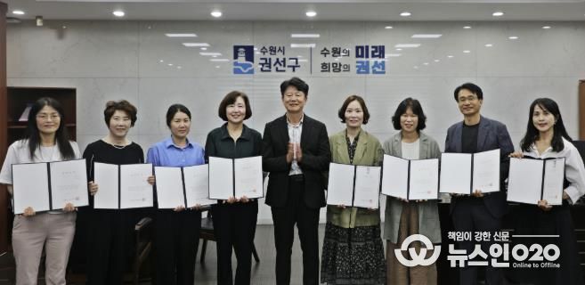(뉴스인020 = 기자) 수원시 권선구는 지난 24일, 권선구청 구청장실에서 김종석 구청장을 비롯해 행정의 최일선에서 헌신·봉사하고 있는 통장 8명이 참석한 가운데 ‘2025년 하반기 통장자녀 장학금’전달식을 가졌다.