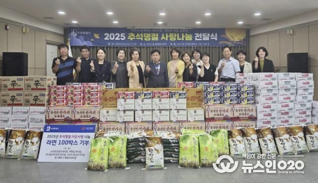 (뉴스인020 = 기자) 수원시 팔달구 화서1동 행정복지센터는 지난 24일, 추석 명절을 맞아 지역사회 이웃들에게 따뜻한 사랑을 전하는 '추석 명절 사랑 나눔 전달식'을 진행했다. 이번 행사에는 다양한 후원자들이 참여해 어려운 이웃들과 함께 나누는 뜻깊은 시간을 만들었다.