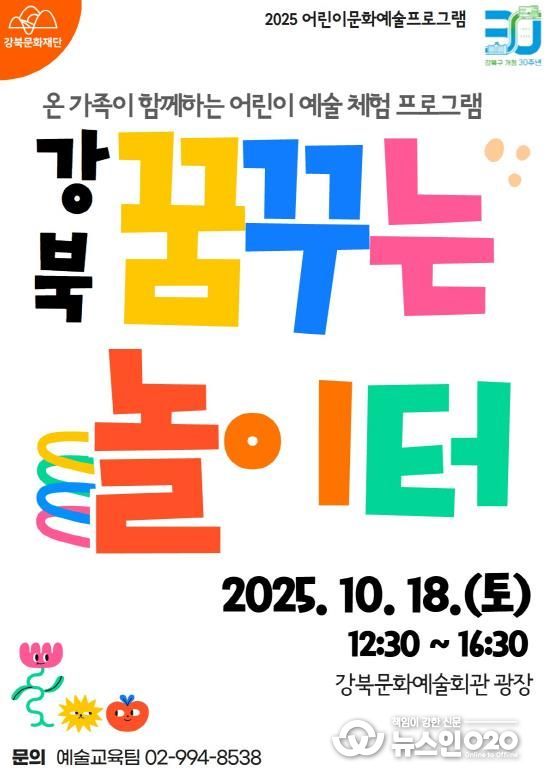 (뉴스인020 = 김성길 기자) 서울 강북문화재단은 오는 10월 18일 강북문화예술회관 광장에서 문화의 날을 맞아 세대 간 소통과 가족 간 유대감을 다질 수 있는 체험형 축제 ‘강북 꿈꾸는 놀이터’를 개최한다.