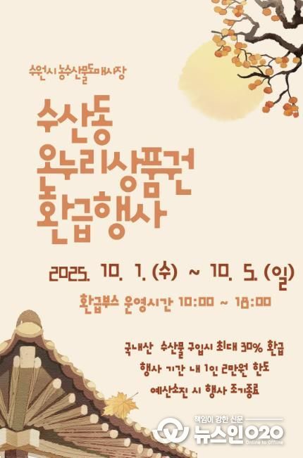 (뉴스인020 = 기자) 수원시농수산물도매시장 수산동이 추석을 앞두고 온누리상품권 환급 행사를 연다.