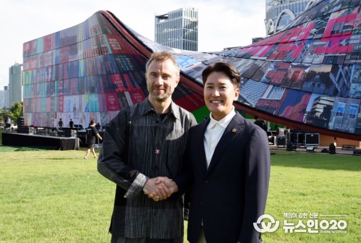 (뉴스인020 = 김성길 기자) 서울특별시의회 주택공간위원회 이민석 부위원장(국민의힘, 마포1)은 25일 개막을 하루 앞둔 '제5회 서울도시건축비엔날레' 현장을 찾아 최종 준비 상황을 점검했다. 이날 점검에는 이번 비엔날레의 총감독을 맡은 토마스 헤더윅(Thomas Heatherwick)이 함께했다.
