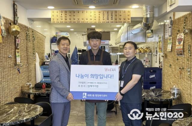 이진영 동장은 “지역사회를 위해 온정의 손길을 내어주신 사장님께 감사드린다. 식사 지원이 필요한 관내 취약계층 주민들이 영양과 사랑이 가득한 명절 음식을 드시며 따뜻한 명절을 보내실 수 있도록 최선을 다하겠다”라고 감사의 뜻을 전했다.