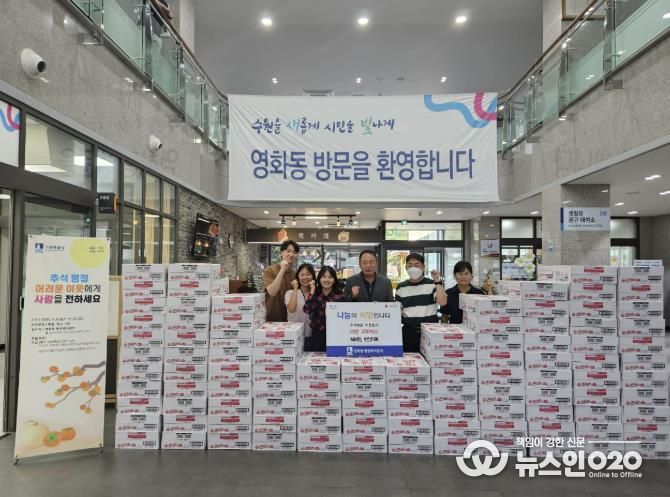 (뉴스인020 = 기자) 수원시 장안구 영화동에 위치한 북회원과 한샘마트가 지난 25일, 추석 명절을 앞두고 영화동 행정복지센터에 라면 200박스를 기부했다.
