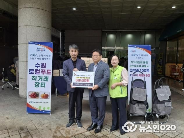 (뉴스인020 = 기자) 지난 25일 한국마사회 수원지사가 추석 명절을 맞이해 약 50만원 상당의 식료품 세트 20개를 기부했다.