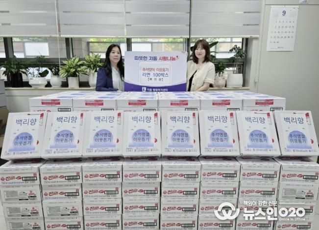이날 전달 받은 라면은 지동 관내 홀몸어르신 및 저소득 대상자 100가구에게 전달될 예정이다.