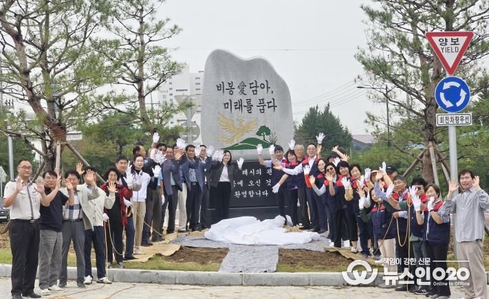 표지석은 ‘비봉 愛 담아, 미래를 품다’라는 비봉면의 비전과 함께 비봉면 방문을 환영한다는 문구가 새겨진 상징물로, 비봉사거리 가운데에 있는 교통섬에 설치됐다.