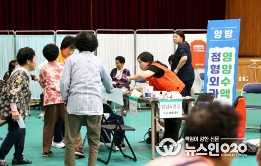 이번 검진은 김일기념체육관에서 금산면 주민 300여 명이 양방 진료, 치과, 안과 등 다양한 의료서비스를 무료로 받았다.