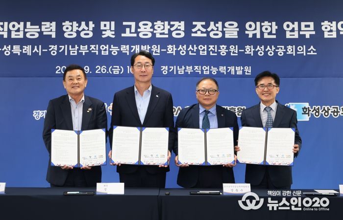 (뉴스인020 = 김성길 기자) 화성특례시가 26일 경기남부직업능력개발원·화성상공회의소·화성산업진흥원과 ‘장애인의 직업능력 향상 및 장애친화형 고용 환경 조성을 위한 업무협약’을 체결했다.