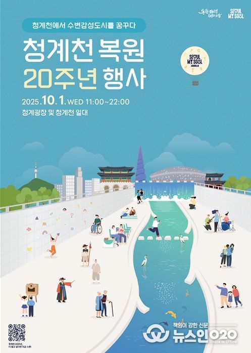 서울시는 10월 1일 청계광장과 청계천 일대에서 ‘청계천 복원 20주년 행사’를 개최한다고 밝혔다. 이번 행사는 지난 20년간 청계천이 가져온 도시 변화와 생태 회복 성과를 기념하고, 문화․예술․첨단기술이 어우러지는 청계천의 미래 비전을 공유하기 위해 마련됐다.