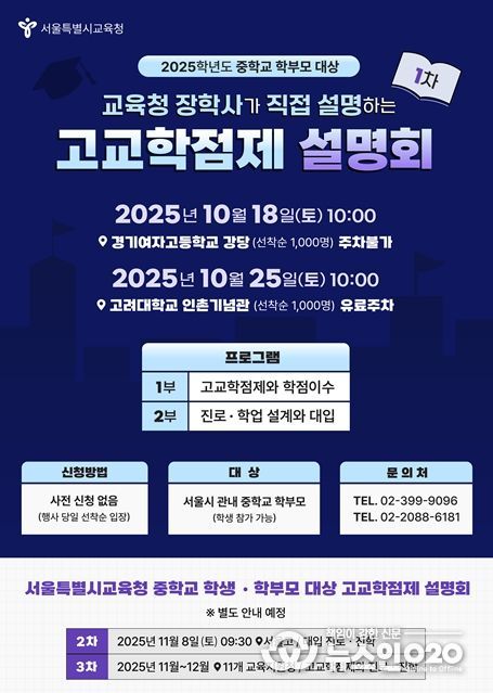 (뉴스인020 = 김성길 기자) 서울시교육청은 고교학점제에 대한 이해도를 높이고 학생들의 진로·학업 설계를 돕기 위하여, 2025학년도 중학교 학부모를 위한 고교학점제 설명회를 개최한다.