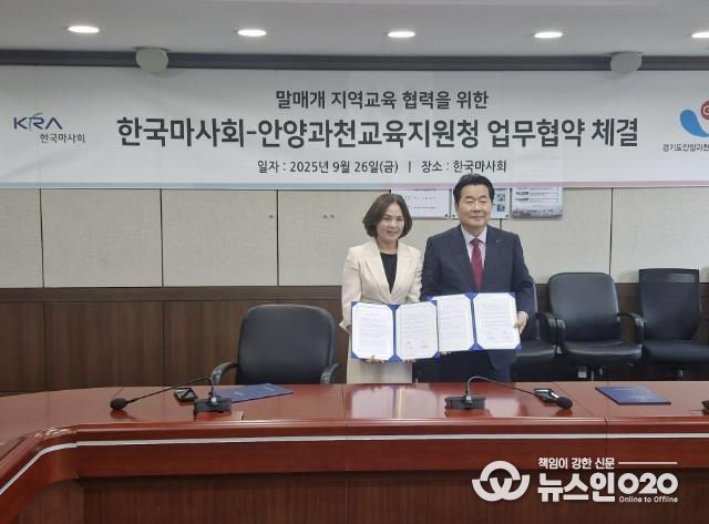 (뉴스인020 = 김성길 기자) 안양과천교육지원청은 9월 26일 렛츠런파크에서 한국마사회와 함께 안양과천 맞춤형 교육 프로그램 구축과 기관 간 협력 강화를 위해 업무협약(MOU)을 체결했다. 이번 협약은 학교와 지역사회가 협력하여 학교 밖 학습터를 마련하고 말 매개 진로 교육을 통한 균등한 학습 기회를 제공하는 것을 목표로 한다.