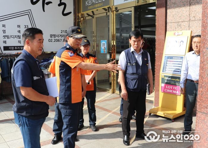 (뉴스인020 = 김성길 기자) 광명소방서는 9월 30일, 광명동 광명사거리역 인근 대형판매시설인 ‘광명 크로앙스’를 방문해 현장안전지도를 실시했다.