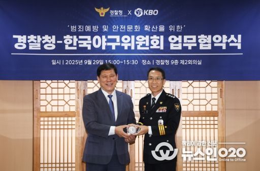 (뉴스인020 = 김민석 기자) KBO와 경찰청(청장 직무대행 유재성)은 9월 29일(월) 경찰청에서 업무 협약을 체결했다.