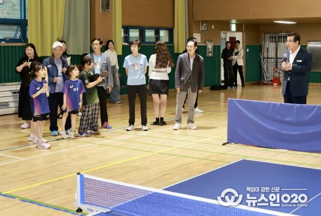 (뉴스인020 = 김성길 기자) 보령시는 지난 29일 명천초등학교에서 한국마사회 탁구단 현정화 감독(前 국가대표 선수, 올림픽 금메달리스트)을 초청해 보령시 탁구 꿈나무들과 특별한 만남을 가졌다고 밝혔다.