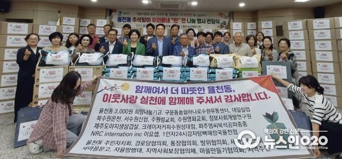 (뉴스인020 = 기자) 수원시 장안구 율천동은 지난 29일, 추석명절을 맞이하여 관내 어려운 이웃에게 따뜻한 나눔을 전하고자 우리동네 ‘찐’한 나눔행사 전달식을 개최했다.