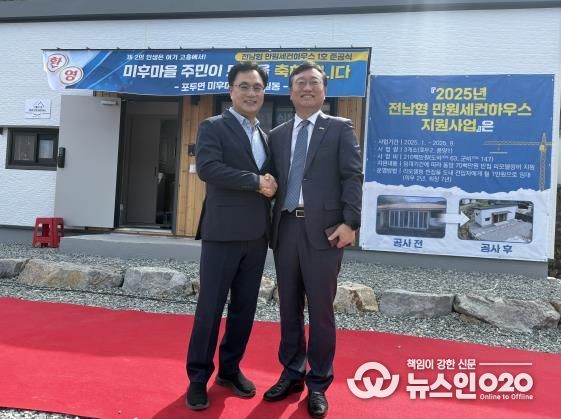 (뉴스인020 = 김성길 기자) 전라남도의회 안전건설소방위원회 송형곤 의원(더불어민주당, 고흥1)은 지난 9월 29일, 고흥군 포두면 미후마을에서 열린 ‘전남형 만원 세컨하우스’ 1호 준공식에 참석해 지역 주민과 함께 첫 결실을 축하했다.