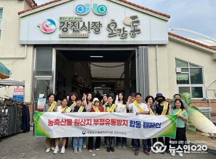 (뉴스인020 = 김성길 기자) 강진군이 지난 29일 오전 추석 명절을 앞두고 강진읍 오감통시장 내 상가 및 외부 노점상을 대상으로 농축산물·임산물의 원산지 표시 합동캠페인을 실시했다. 이번 캠페인은 명절을 맞아 수요가 급증하는 제수용 농산물 및 임산물의 부정 유통을 사전 차단하고, 소비자가 안심하고 먹거리를 구매할 수 있는 환경을 조성하기 위해 마련됐다.