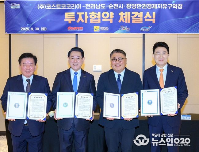 순천시는 30일 서울 여의도 페어몬트 앰배서더 호텔에서 ㈜코스트코코리아(이하 “코스트코”), 전라남도, 광양만권경제자유구역청과 순천 입점을 위한 투자협약(MOU)을 체결했다.