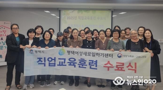 (뉴스인020 = 김성길 기자) 평택시 여성새로일하기센터는 지난 26일, ‘가정관리사·수납전문가 과정’ 직업교육훈련 수료식을 개최했다.