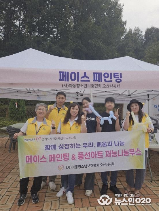 (뉴스인020 = 김성길 기자) (사)아동청소년보호협회 오산시지회는 지난 9월 27일 신장1동에서 열린 고인돌축제에 참여해 ‘페이스페인팅·풍선아트’ 재능나눔 부스를 운영했다고 밝혔다.
