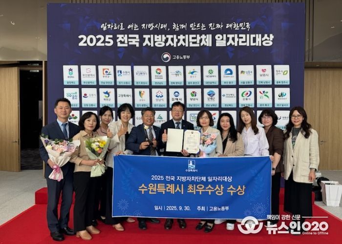 (뉴스인020 = 기자) 수원특례시가 고용노동부 주관 ‘2025년 전국지방자치단체 일자리 대상’ 지역일자리 목표 공시제 부문에서 최우수상(고용노동부장관상)을 받았다.