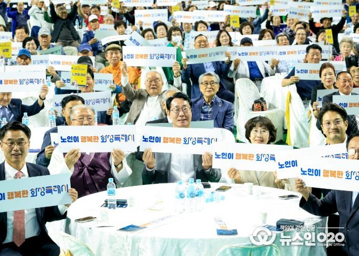 정명근 화성특례시장은 축사에서 “화성이 특례시로 성장할 수 있었던 것은‘적토성산’이라는 말처럼 어르신들의 땀과 노력이 모인 덕분”이라며 “모든 어르신들이 웃음이 끊이지 않는, 청춘 같은 하루하루를 보내실 수 있도록 시는 인공지능(AI) 말벗 돌봄 체계 구축과 어르신 일자리 등 다양한 복지 인프라 강화로 함께 하겠다”고 말했다.