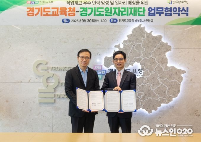 (뉴스인020 = 김성길 기자) 경기도일자리재단과 경기도교육청은 30일 경기도교육청 남부청사에서 ‘경기도 직업계고 중심 우수인력 양성 및 고용 연계 강화를 위한 업무협약’을 체결했다.