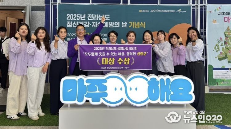 (뉴스인020 = 김성길 기자) 신안군은 전라남도와 전라남도광역정신건강복지센터에서 개최한 ‘2025년 생명 사랑 챌린지’에서 31개 기관·단체, 2,651명 참가자 중 대상을 받는 쾌거를 이뤘다.