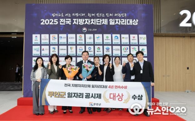 고용노동부가 주관하는 본 평가는 전국 243개 지자체의 전년도 일자리 정책 추진실적을 ▲일자리 목표 달성도 ▲지자체의 일자리 창출 의지 ▲지역 고용거버넌스 및 협력체계 구축 ▲우수시책 발굴·추진 등으로 종합 평가해 우수 지자체를 선정한다. 무안군은 2022·2023년 최우수상, 2024년 우수상에 이어 올해 대상을 수상하며 역대 최고 성과를 기록했다.