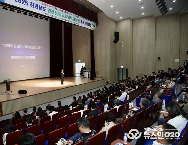 (뉴스인020 = 김성길 기자) 전라남도교육청은 9월 30일 나주 한국에너지공과대학교 강당에서 본청과 22개 교육지원청 민관산학 교육협력위원회 위원 500여 명이 참석한 가운데 ‘2025 민관산학 교육협력위원회 소통한마당’을 개최했다.