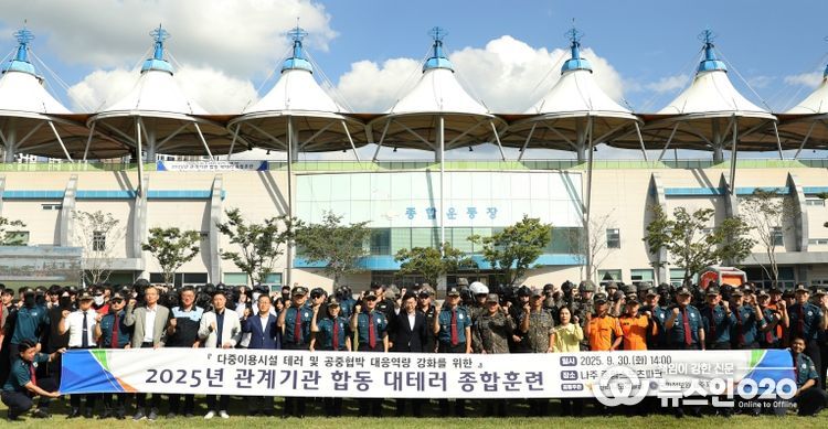 (뉴스인020 = 김성길 기자) 전남경찰청은 나주종합스포츠파크에서 국가정보원(광주지부), 육군 제31보병사단, 제11공수특전여단, 공군 제1전투비행단, 전남소방본부, 영산강유역환경청 등 10개 기관 250여명이 참여한 가운데 관계기관 합동 대테러 종합훈련을 실시했다.