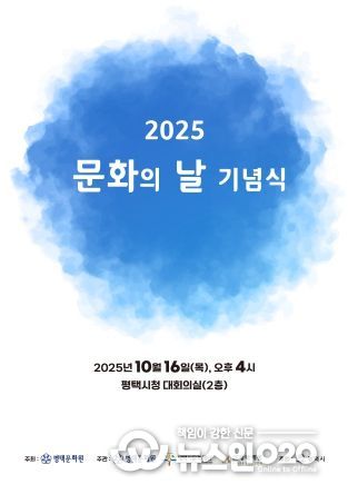 (뉴스인020 = 김성길 기자) 평택문화원이 주최하는 ‘2025 문화의 날 기념식’이 오는 10월 16일, 오후 4시, 평택시청 대회의실에서 개최한다. 이번 행사는 평택문화원, 평택시문화재단, (사)평택예총이 공동으로 주관하고, 평택시가 후원한다.