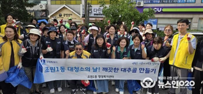(뉴스인020 = 기자) 수원시 장안구 조원1동은 추석과 APEC을 맞아 추진 중인 국민 참여 운동인 「대한민국 새단장」 캠페인의 일환으로 추석맞이 대청소를 실시했다.